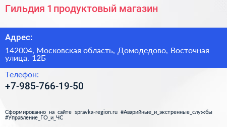 Гильдия 1, продуктовый магазин по адресу 142004, Московская область, Домодедово, Восточная улица, 12Б в дальнейшем Организация, размещена в следующих категориях: