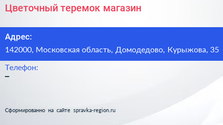 Цветочный теремок, магазин по адресу 142000, Московская область, Домодедово, Курыжова, 35 в дальнейшем Организация, размещена в следующих категориях: