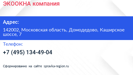 ЭКООКНА, компания по адресу 142002, Московская область, Домодедово, Каширское шоссе, 7 в дальнейшем Организация, размещена в следующих категориях: