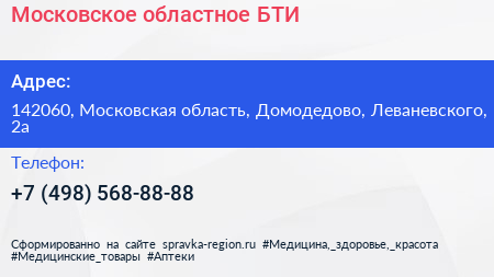 Московское областное БТИ по адресу 142060, Московская область, Домодедово, Леваневского, 2а в дальнейшем Организация, размещена в следующих категориях: