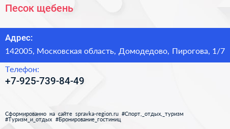 Песок-щебень по адресу 142005, Московская область, Домодедово, Пирогова, 1/7 в дальнейшем Организация, размещена в следующих категориях: