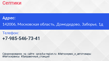 Септики по адресу 142006, Московская область, Домодедово, Заборье, 1д в дальнейшем Организация, размещена в следующих категориях:
