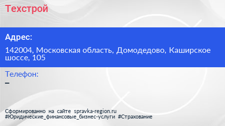 Техстрой по адресу 142004, Московская область, Домодедово, Каширское шоссе, 105 в дальнейшем Организация, размещена в следующих категориях: