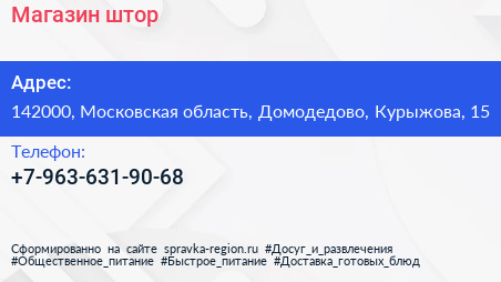 Магазин штор по адресу 142000, Московская область, Домодедово, Курыжова, 15 в дальнейшем Организация, размещена в следующих категориях: