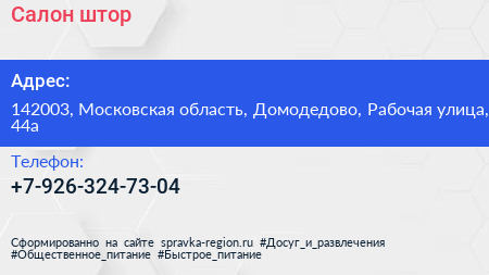 Салон штор по адресу 142003, Московская область, Домодедово, Рабочая улица, 44а в дальнейшем Организация, размещена в следующих категориях:
