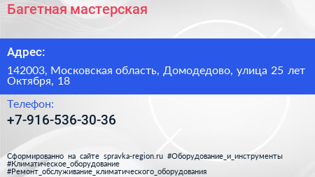 Багетная мастерская по адресу 142003, Московская область, Домодедово, улица 25 лет Октября, 18 в дальнейшем Организация, размещена в следующих категориях: