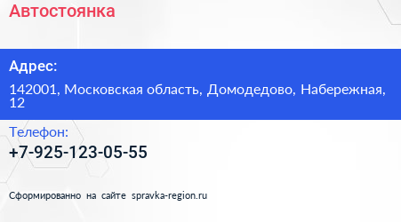 Автостоянка по адресу 142001, Московская область, Домодедово, Набережная, 12 в дальнейшем Организация, размещена в следующих категориях: