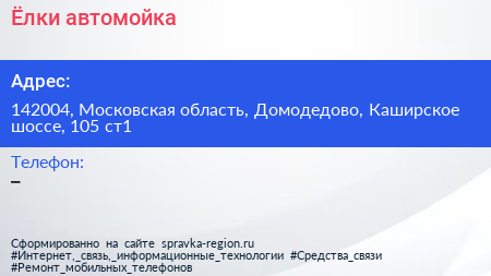 Ёлки, автомойка по адресу 142004, Московская область, Домодедово, Каширское шоссе, 105 ст1 в дальнейшем Организация, размещена в следующих категориях: