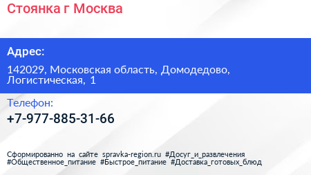 Стоянка, г. Москва по адресу 142029, Московская область, Домодедово, Логистическая, 1 в дальнейшем Организация, размещена в следующих категориях: