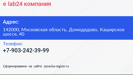 e-lab24, компания по адресу 142000, Московская область, Домодедово, Каширское шоссе, 40 в дальнейшем Организация, размещена в следующих категориях: