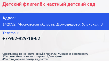Детский флигелёк, частный детский сад по адресу 142032, Московская область, Домодедово, Уланская, 3 в дальнейшем Организация, размещена в следующих категориях: