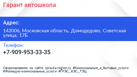 Гарант, автошкола по адресу 142006, Московская область, Домодедово, Советская улица, 17Б в дальнейшем Организация, размещена в следующих категориях: