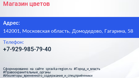 Магазин цветов по адресу 142001, Московская область, Домодедово, Гагарина, 58 в дальнейшем Организация, размещена в следующих категориях: