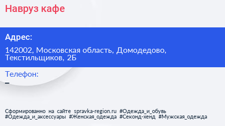 Навруз, кафе по адресу 142002, Московская область, Домодедово, Текстильщиков, 2Б в дальнейшем Организация, размещена в следующих категориях: