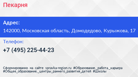 Пекарня по адресу 142000, Московская область, Домодедово, Курыжова, 17 в дальнейшем Организация, размещена в следующих категориях: