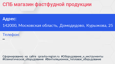 СПБ, магазин фастфудной продукции по адресу 142000, Московская область, Домодедово, Курыжова, 25 в дальнейшем Организация, размещена в следующих категориях: