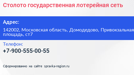 Столото, государственная лотерейная сеть по адресу 142002, Московская область, Домодедово, Привокзальная площадь, ст7 в дальнейшем Организация, размещена в следующих категориях: