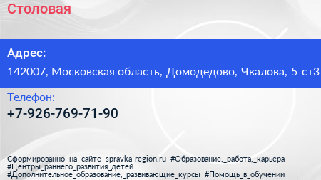Столовая по адресу 142007, Московская область, Домодедово, Чкалова, 5 ст3 в дальнейшем Организация, размещена в следующих категориях: