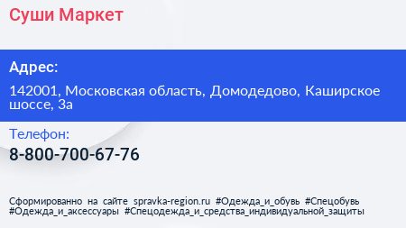 Суши-Маркет по адресу 142001, Московская область, Домодедово, Каширское шоссе, 3а в дальнейшем Организация, размещена в следующих категориях: