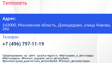 Теплосеть по адресу 142000, Московская область, Домодедово, улица Кирова, 26а в дальнейшем Организация, размещена в следующих категориях: