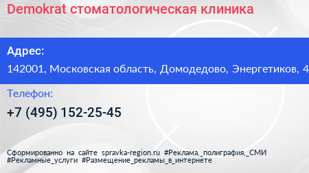 Demokrat, стоматологическая клиника по адресу 142001, Московская область, Домодедово, Энергетиков, 4 в дальнейшем Организация, размещена в следующих категориях: