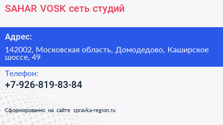 SAHAR & VOSK, сеть студий по адресу 142002, Московская область, Домодедово, Каширское шоссе, 49 в дальнейшем Организация, размещена в следующих категориях: