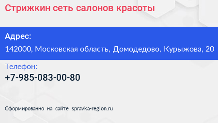 Стрижкин, сеть салонов красоты по адресу 142000, Московская область, Домодедово, Курыжова, 20 в дальнейшем Организация, размещена в следующих категориях: