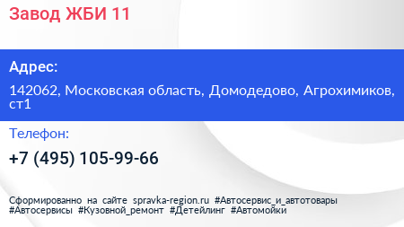Завод ЖБИ 11 по адресу 142062, Московская область, Домодедово, Агрохимиков, ст1 в дальнейшем Организация, размещена в следующих категориях: