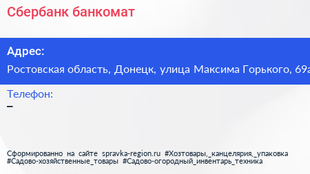Сбербанк, банкомат по адресу Ростовская область, Донецк, улица Максима Горького, 69а в дальнейшем Организация, размещена в следующих категориях: