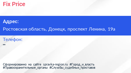 Fix Price по адресу Ростовская область, Донецк, проспект Ленина, 19а в дальнейшем Организация, размещена в следующих категориях: