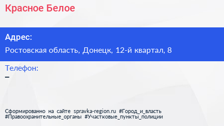 Красное & Белое по адресу Ростовская область, Донецк, 12-й квартал, 8 в дальнейшем Организация, размещена в следующих категориях: