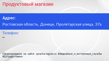 Продуктовый магазин по адресу Ростовская область, Донецк, Пролетарская улица, 37а в дальнейшем Организация, размещена в следующих категориях: