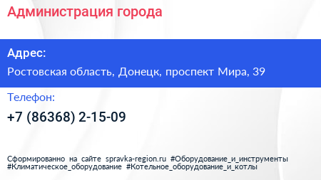 Администрация города по адресу Ростовская область, Донецк, проспект Мира, 39 в дальнейшем Организация, размещена в следующих категориях:
