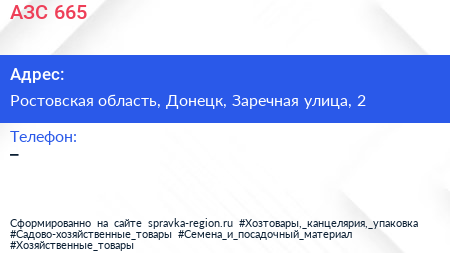 АЗС №665 по адресу Ростовская область, Донецк, Заречная улица, 2 в дальнейшем Организация, размещена в следующих категориях: