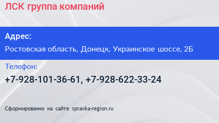 ЛСК, группа компаний по адресу Ростовская область, Донецк, Украинское шоссе, 2Б в дальнейшем Организация, размещена в следующих категориях: