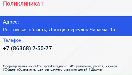 Поликлиника №1 по адресу Ростовская область, Донецк, переулок Чапаева, 1а в дальнейшем Организация, размещена в следующих категориях: