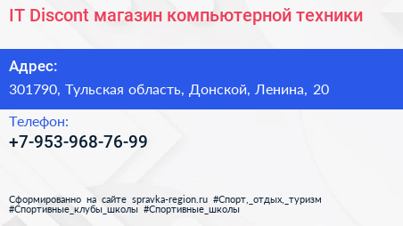 IT-Discont, магазин компьютерной техники по адресу 301790, Тульская область, Донской, Ленина, 20 в дальнейшем Организация, размещена в следующих категориях: