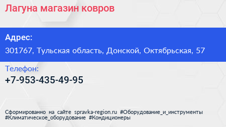 Лагуна, магазин ковров по адресу 301767, Тульская область, Донской, Октябрьская, 57 в дальнейшем Организация, размещена в следующих категориях: