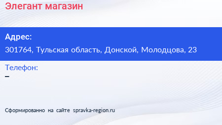 Элегант, магазин по адресу 301764, Тульская область, Донской, Молодцова, 23 в дальнейшем Организация, размещена в следующих категориях: