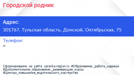 Адрес: Тульская область, Донской, Октябрьская, 60/1