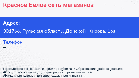 Красное & Белое, сеть магазинов по адресу 301766, Тульская область, Донской, Кирова, 16а в дальнейшем Организация, размещена в следующих категориях: