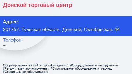 Донской, торговый центр по адресу 301767, Тульская область, Донской, Октябрьская, 44 в дальнейшем Организация, размещена в следующих категориях: