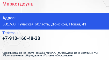 Маркетдоуль по адресу 301760, Тульская область, Донской, Новая, 41 в дальнейшем Организация, размещена в следующих категориях:
