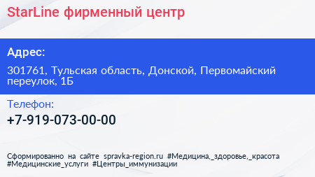 StarLine, фирменный центр по адресу 301761, Тульская область, Донской, Первомайский переулок, 1Б в дальнейшем Организация, размещена в следующих категориях: