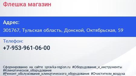 Флешка, магазин по адресу 301767, Тульская область, Донской, Октябрьская, 59 в дальнейшем Организация, размещена в следующих категориях: