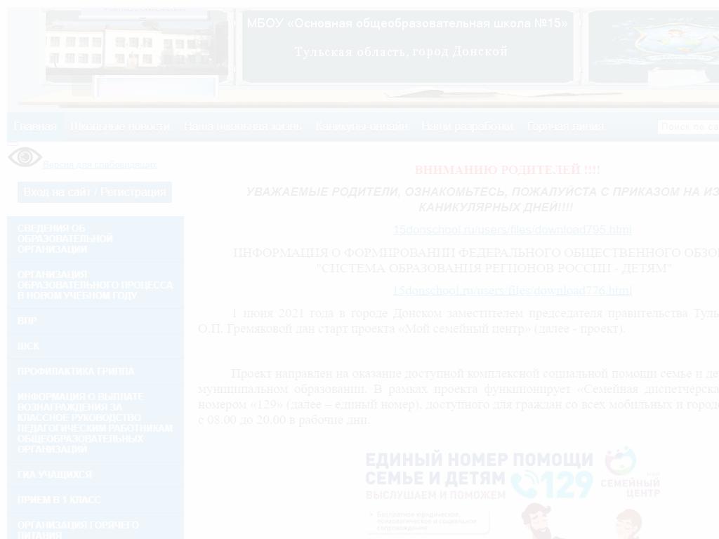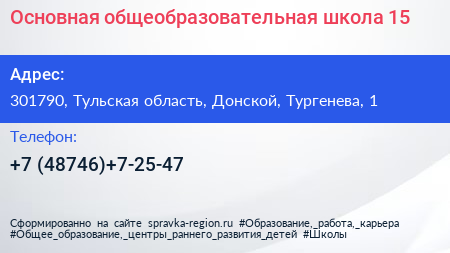 Основная общеобразовательная школа №15 по адресу 301790, Тульская область, Донской, Тургенева, 1 в дальнейшем Организация, размещена в следующих категориях:
