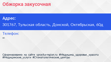 Обжорка, закусочная по адресу 301767, Тульская область, Донской, Октябрьская, 60д в дальнейшем Организация, размещена в следующих категориях: