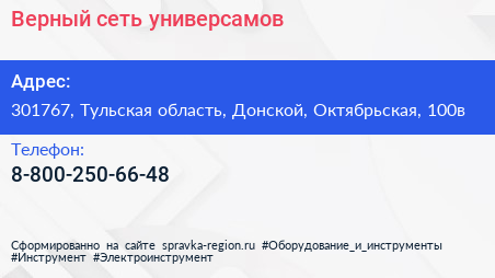 Верный, сеть универсамов по адресу 301767, Тульская область, Донской, Октябрьская, 100в в дальнейшем Организация, размещена в следующих категориях: