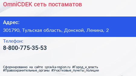 OmniCDEK, сеть постаматов по адресу 301790, Тульская область, Донской, Ленина, 2 в дальнейшем Организация, размещена в следующих категориях: