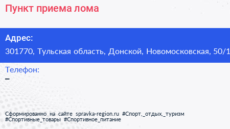 Пункт приема лома по адресу 301770, Тульская область, Донской, Новомосковская, 50/1 в дальнейшем Организация, размещена в следующих категориях:
